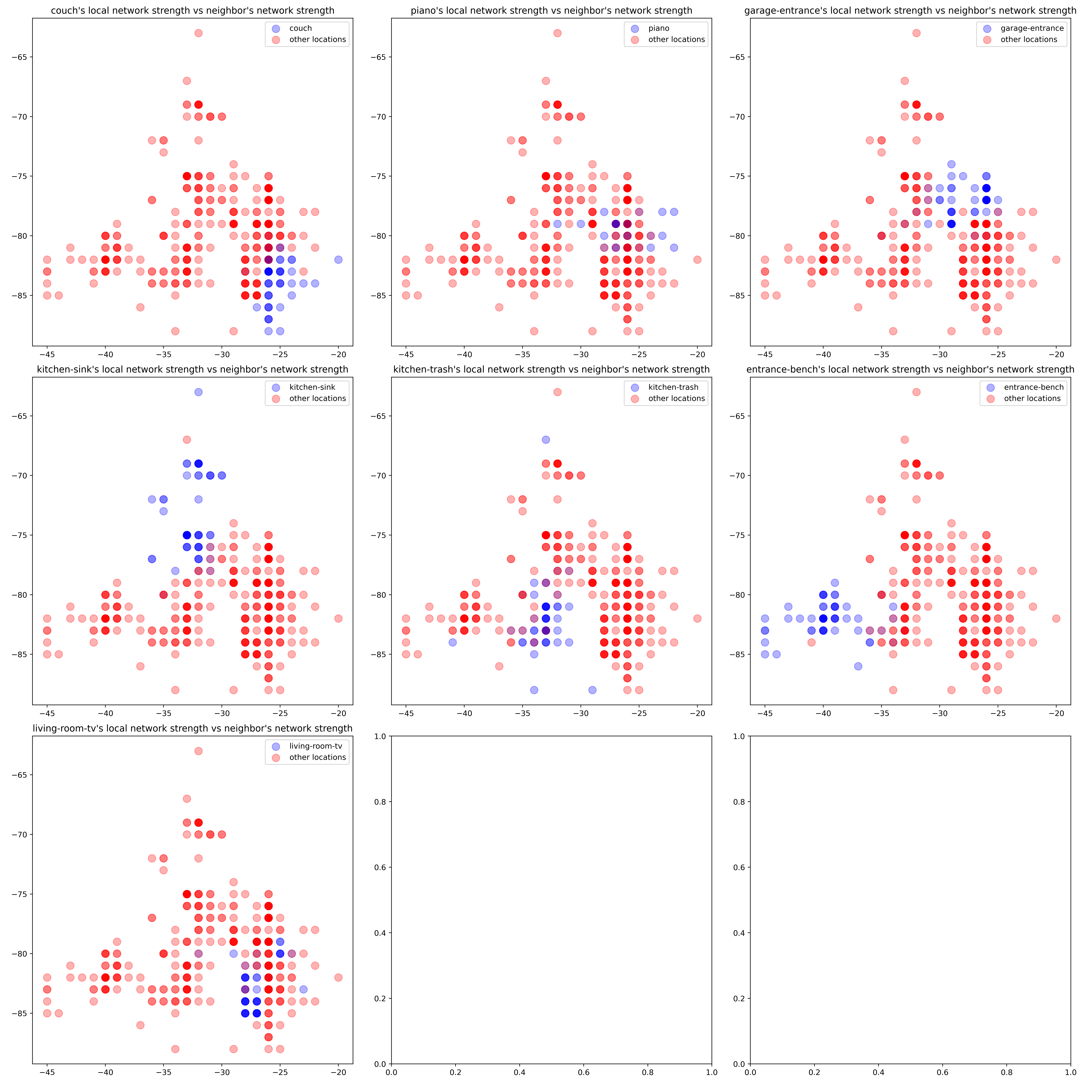 Note how the couch, garage entrance, kitchen sink, and entrance have a fair bit of separation. These locations are about 10 feet away from each other, so it’s promising that with just 2 networks, we can differentiate between locations that are about 10 feet away from each other.