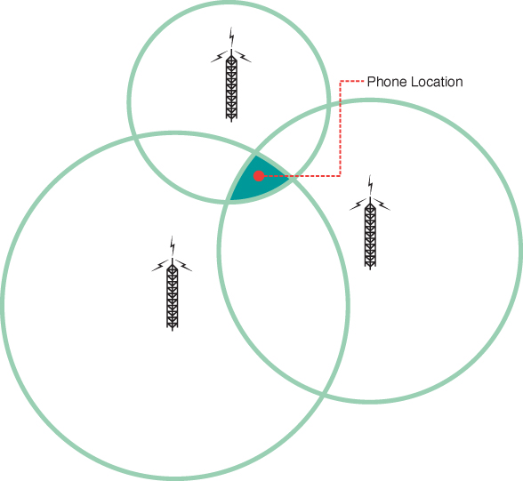 I also looked into using cell tower data because cell signal functions consistently in most outdoor and indoor locations. By measuring the strength of a cell signal from a particular tower, one can measure the distance from that tower. Repeat that process with three different cell towers, and you get three circles whose intersection reveals the tracker’s location. This is known as “triangulation,” or “cell signal triangulation” in this case.